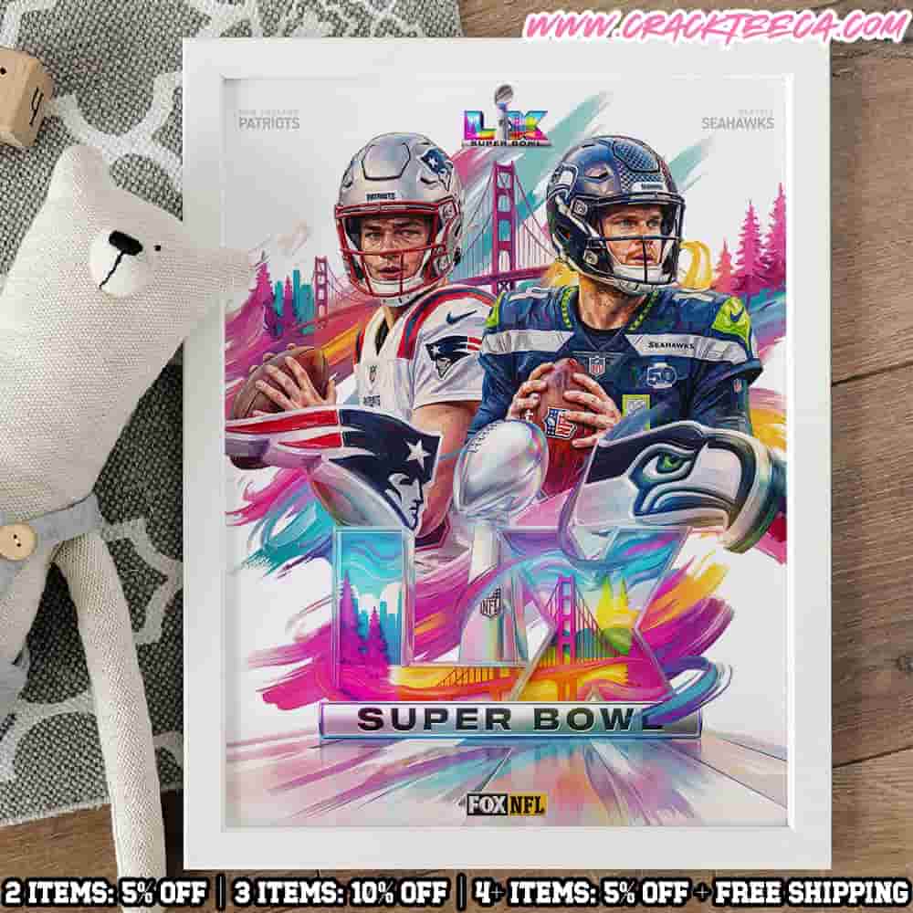 The 2025-26 Super Bowl LX Is Set New England Patriots Vs Seattle Seahawks Championship Showdown Poster Canvas is a premium commemorative sports art piece designed for dedicated football fans, professional sports memorabilia collectors, and as a sophisticated gift to celebrate a historic milestone in the National Football League. This high-quality canvas serves as a factual record of the championship matchup between the American Football Conference champion New England Patriots and the National Football Conference champion Seattle Seahawks. The design is centered on high-definition printed graphics that prominently feature the official logos of both franchises, rendered with technical accuracy in team-specific colors including nautical blue, New England red, silver, action green, and wolf grey. Central to the artwork is the Super Bowl LX insignia, which identifies the 60th edition of the league’s premier event, set against a professional background that emphasizes the “Championship Showdown” theme. This wall art provides a permanent connection to the 2025-26 postseason, which culminates at Levi’s Stadium in Santa Clara, California, on February 8, 2026. By linking the teams to this specific venue in the San Francisco Bay Area, the canvas offers an authentic perspective on the path taken by both organizations from their respective homes at Gillette Stadium and Lumen Field. Typically constructed from archival-grade canvas stretched over a durable wood frame, this product ensures long-lasting color fidelity and structural integrity for display in home offices, fan caves, or sports galleries. As a piece reflecting officially licensed team branding, it adheres to the strict visual standards of the league, ensuring all marks and insignias are technically verified. Beyond its functional use as home decor, the canvas holds substantial sentimental value for the “12s” and the “Patriots Nation” alike, acting as a centerpiece for commemorating the specific 2025 season. It is an ideal item for preserving the memory of the coastal rivalry that defined the sixtieth championship era. Whether used for interior design or as part of a curated sports collection, this poster canvas remains an essential keepsake for those who followed the rigorous road to the Super Bowl LX championship. By integrating precise geographic and entity-based details, this product provides supporters with a lasting and verified connection to one of the most significant matchups in modern professional football history.