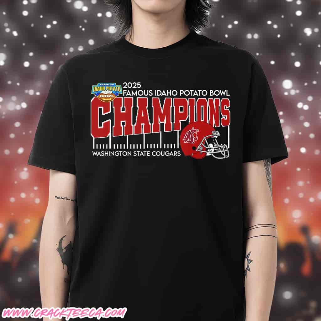 About 2025 Famous Idaho Potato Bowl Champions Washington State Cougars Short Sleeve T-Shirt By Crackteeca