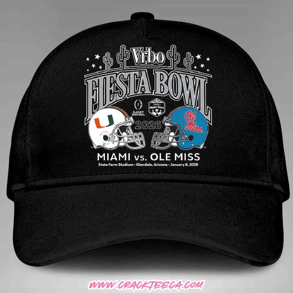 About 2026 Vrbo Fiesta Bowl Matchup Miami Hurricanes Vs Ole Miss Rebels Cactus Matchup CFP Semifinal Classic Hat-Cap By Crackteeca