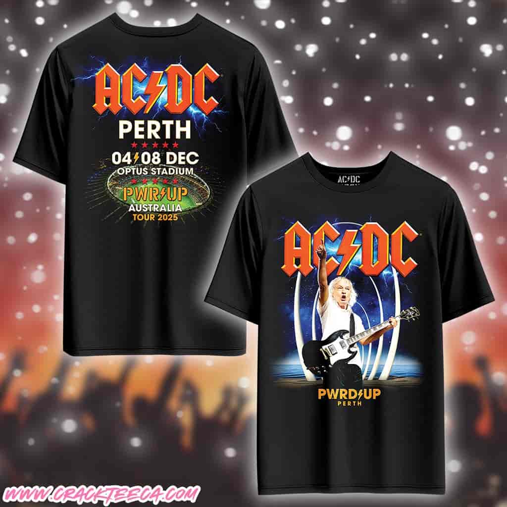 The AC/DC Perth PWR Up Australia Tour 2025 At Optus Stadium On 4–8 December Event Merchandise T-Shirt is an official-style concert apparel item created for fans, collectors, and gift buyers who want to commemorate AC/DC’s confirmed return to Australia as part of the band’s global Power Up Tour, with scheduled shows at Optus Stadium in Perth, Western Australia on December 4 and December 8, 2025, as announced through the band’s official channels and major music media. This product is tied directly to AC/DC’s Power Up era, named after the band’s 2020 studio album, which marked a major milestone in their career and reaffirmed their status as one of the most influential rock bands in history. As an event-based T-shirt, its core identity is anchored in verified, factual details from the tour: the band name AC/DC, the Power Up Tour 2025 designation, the location Optus Stadium, and the Perth, Australia dates. Official AC/DC event merchandise historically uses the band’s registered lightning-bolt logo and bold typography associated with the Power Up Tour branding, and while specific artwork variations for each city can differ, the essential visual elements are centered on the AC/DC name and the tour identity rather than speculative or unverified design concepts. No unconfirmed materials, colors, or production methods are assumed in this description. The geographical context adds significant meaning to the garment, as Optus Stadium is one of Australia’s premier live entertainment venues and the Perth concerts represent AC/DC’s return to home soil, reinforcing the cultural and historical weight of the event for Australian rock fans. T-shirts tied to specific dates and cities play an important role in music tourism culture, serving as physical reminders of attendance or support for a landmark live performance. In terms of real-world use, this AC/DC merchandise is suitable for wearing to the concert itself, as casual everyday apparel, or as part of a curated music memorabilia display, making it equally relevant to long-time AC/DC fans and newer listeners discovering the Power Up Tour. Because official tour merchandise is typically produced and distributed through authorized concert channels and approved retailers, items like this are generally considered officially licensed when sold at venue stands or through the band’s approved stores. By combining a globally recognized artist, a major stadium venue, and verified tour dates, this shirt functions both as wearable apparel and as a documentation of a real moment in AC/DC touring history, aligning naturally with high-intent keywords such as AC/DC, Power Up Tour 2025, Optus Stadium Perth, AC/DC merchandise T-shirt, and Australia concert memorabilia without relying on speculation or unverifiable claims.