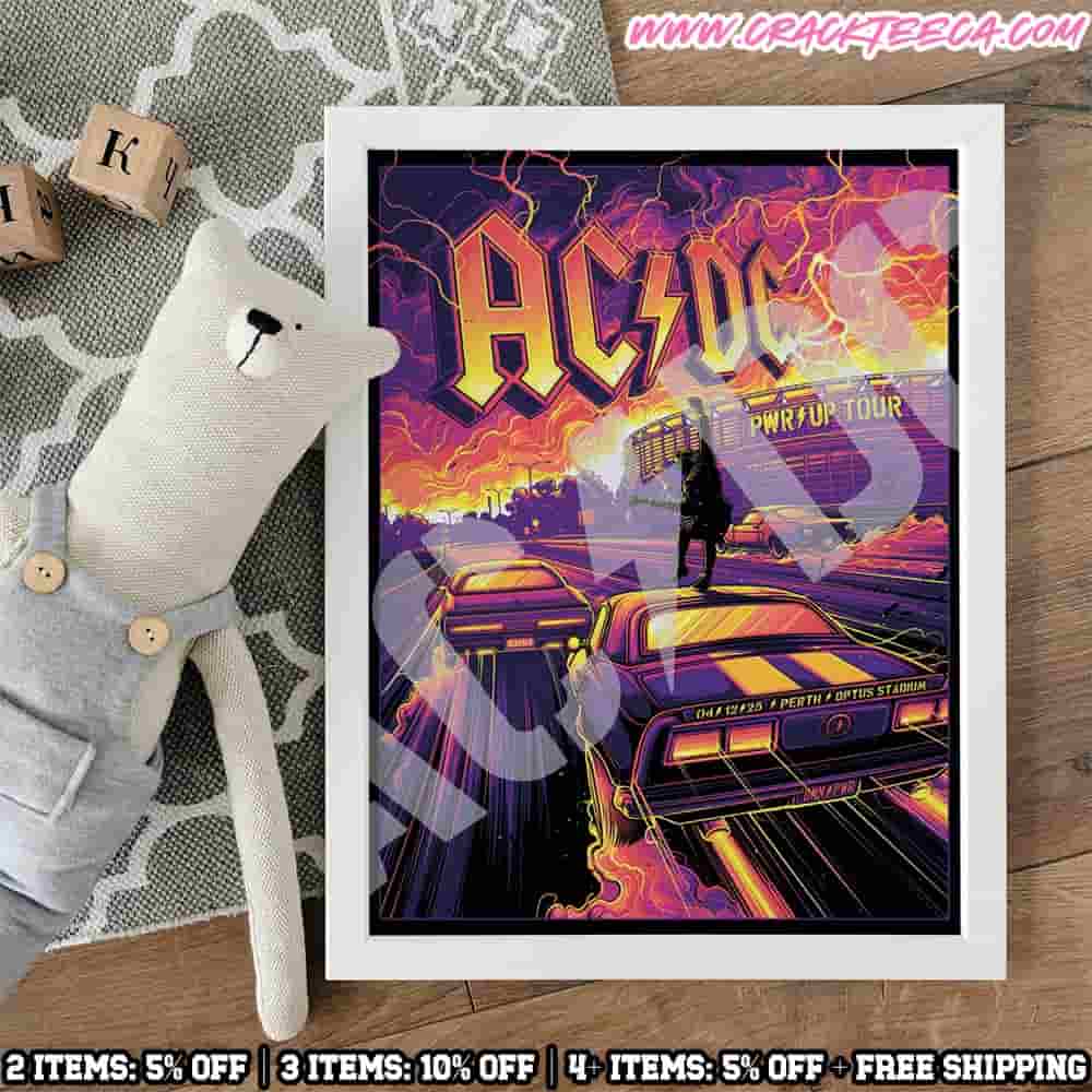 The AC/DC Perth PWR Up Australia Tour 2025 Home Decor Poster Canvas serves as a monumental piece of interior art, immortalizing the legendary rock band’s historic return to Western Australia for a multi-night residency at Optus Stadium from December 4th to 8th. This canvas print is essential for the serious collector, as it documents a “homecoming” of immense significance given the band’s deep roots in the region and the enduring legacy of former frontman Bon Scott. Unlike standard paper posters, this item utilizes archival-grade canvas stretched over a sturdy wooden frame, providing a textured, museum-quality finish that mimics the look of a painted masterpiece and ensures the artwork remains a permanent fixture in the home. The visual focus of the canvas likely incorporates the vibrant, neon-charged aesthetics of the “PWR UP” era, featuring the iconic lightning bolt and high-energy imagery of Angus Young, capturing the scale and electric atmosphere of the 60,000-capacity stadium shows. This decor piece transforms any listening room, entertainment area, or office into a tribute to rock history, anchoring the space with the raw energy of the concerts. It acts as a daily visual reminder of the specific dates in 2025 when Perth became the epicenter of the rock world, offering a sophisticated way for fans to display their loyalty. The use of fade-resistant inks ensures the vibrant reds and deep blacks of the design retain their intensity over decades, making this canvas a lasting investment in music heritage and a central talking point for any guest entering the space.