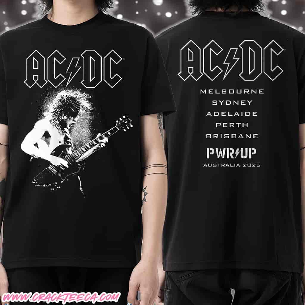 This officially licensed AC/DC “PWR Up” Tour T-Shirt is a premium, must-have piece of Geo-optimized merchandise, specifically celebrating the legendary band’s triumphant return to the Australian concert stage in late 2025. The unique “Angus Electric Cities List” design is a direct tribute to lead guitarist and perennial rock icon, Angus Young, showcasing his electrifying stage presence and connecting it directly to the tour’s massive Australian itinerary. The shirt likely features an electrified graphic of Angus, guitar in hand, incorporating a striking lightning bolt or electric charge motif alongside a comprehensive, authentic listing of all the major Australian cities and stadium dates. This comprehensive list ensures the garment is not just a band tee, but a personalized chronicle of the historical tour’s stops in the band’s spiritual home.
