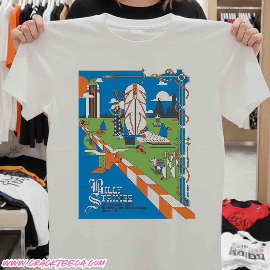 The Billy Strings Austin Texas 2025 Night 2 Official Poster T-Shirt is a specialized piece of concert memorabilia designed for the dedicated fanbase attending the exclusive, intimate conclusion of the artist’s two-night engagement in the Texas capital. Targeted at collectors and attendees of the December 14, 2025 performance, this garment distinguishes itself by featuring the authorized adaptation of the specific “Night 2” gig poster, a visual artwork distinct from the previous evening’s arena design. While the first night occupied the expansive Moody Center, this item celebrates the transition to the legendary ACL Live at The Moody Theater, a venue revered globally as the permanent home of the Austin City Limits television series. The shirt’s graphic composition faithfully replicates the day-specific lithograph created for this show, capturing the intricate linework and psychedelic-Americana aesthetic that typically defines Billy Strings’ visual identity. The design anchors the wearer in the specific geography of downtown Austin, often incorporating motifs relevant to the venue’s rich history or the local Texan landscape.
