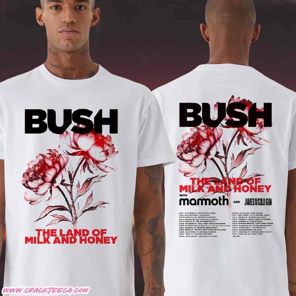About Bush The Land Of Milk And Honey 2026 Tour Dates With Mamoth And James And The Cold Gun T-Shirt By Crackteeca