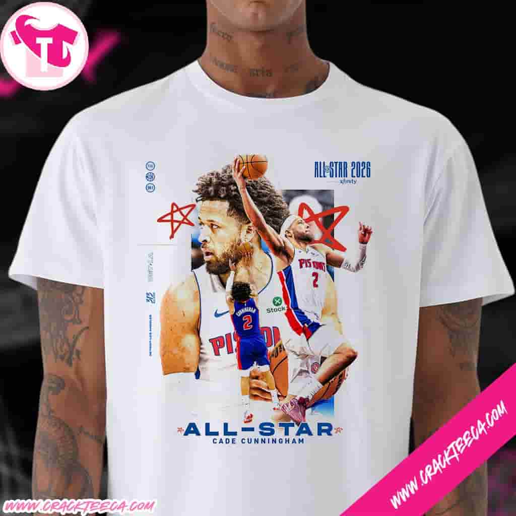 This official Cade Cunningham NBA Detroit Pistons All-Star Starter 2026 T-Shirt is a premium piece of athletic apparel meticulously crafted for passionate basketball fans and dedicated sports memorabilia collectors looking to celebrate a historic milestone in Detroit sports history. Released following the NBA’s official announcement on January 19, 2026, this commemorative garment honors Cade Cunningham’s elite selection as a starter for the 2026 Eastern Conference All-Star squad, a feat that solidifies his status as a cornerstone of the league’s modern era. The shirt features a high-impact design that seamlessly blends the classic Detroit Pistons royal blue, red, and white color palette with exclusive All-Star branding specifically designed for the midseason classic held at the state-of-the-art Intuit Dome in Inglewood, California. Constructed from a high-grade, 100% ring-spun cotton or a soft tri-blend fabric, the t-shirt ensures maximum breathability and a comfortable fit whether you are cheering from the stands at Little Caesars Arena or representing the Motor City from home. The front of the shirt typically showcases bold, screen-printed graphics including Cunningham’s name, his iconic jersey number, and the official Detroit Pistons logo integrated with the “All-Star Starter 2026” designation. This piece of Detroit Pistons apparel serves as more than just a casual top; it is a tangible archive of the 2025-26 season where Cunningham averaged a career-high 25.9 points and 9.6 assists per game, leading the franchise back to national prominence. As the NBA transitions into a new “U.S. vs. The World” round-robin tournament format for the February 15, 2026, showcase, this shirt places fans at the center of the action, connecting them to the global community of basketball enthusiasts witnessing the rise of a new superstar generation. Ideal for gifting during the All-Star break or for adding to a growing collection of authentic NBA merchandise, the shirt’s durable construction ensures that the vibrant graphics and structural integrity remain intact through years of wear and display. Officially licensed by the league, this Cade Cunningham All-Star 2026 shirt guarantees authenticity for those seeking genuine gear that meets the high standards of professional sports apparel. Whether worn as a statement piece on game night or preserved as a collector’s item, this t-shirt immortalizes the moment the Detroit point guard was recognized by fans, players, and media alike as one of the premier talents in the world of professional basketball. By wearing this 2026 NBA All-Star Starter apparel, supporters proudly display their allegiance to the Pistons’ resurgence while honoring the individual brilliance of their franchise leader on the world’s biggest stage in Los Angeles.