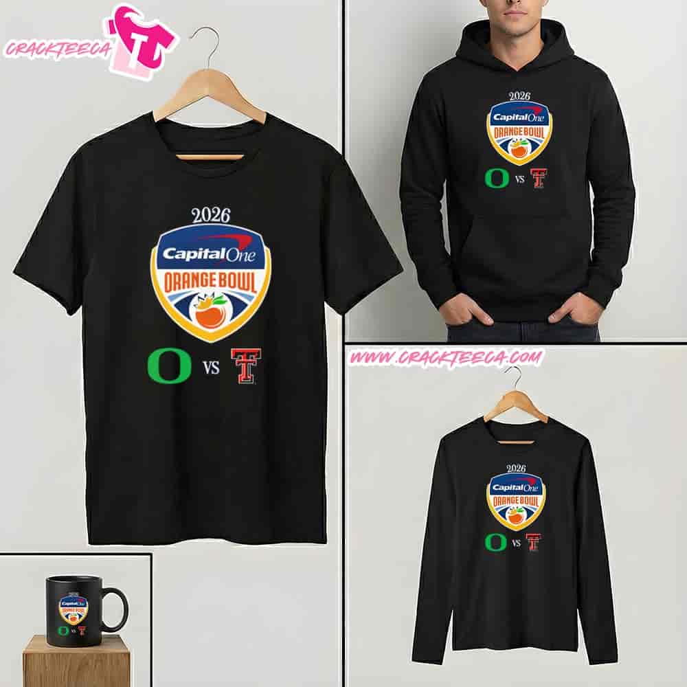 About Capital One Orange Bowl 2026 Texas Tech Red Raiders Vs Oregon Ducks CFP Quarterfinal T-Shirt By Crackteeca