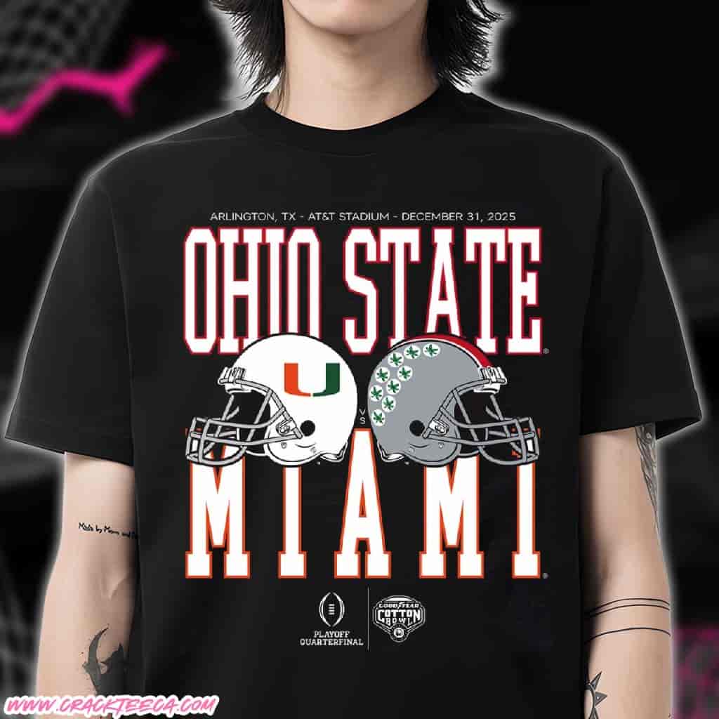 The Cotton Bowl Classic 2025 Miami Hurricanes vs Ohio State Buckeyes Helmet Matchup Unisex T-Shirt is a collegiate football apparel item created for NCAA football fans, alumni, collectors of bowl game memorabilia, and gift buyers seeking an event-specific shirt tied to a historic postseason matchup. As indicated by the title, this unisex T-shirt commemorates the 2025 edition of the Cotton Bowl Classic and presents the Miami Hurricanes and Ohio State Buckeyes in a helmet matchup format, a visual style widely recognized in college football culture for emphasizing head-to-head competition and institutional identity. The core design concept typically centers on two football helmets facing one another, each clearly associated with its respective program, accompanied by the Cotton Bowl Classic name and the year 2025 to anchor the shirt to a defined season and event. Team colors play a central role in recognition, with Miami traditionally identified by orange and green tones and Ohio State by scarlet and gray, creating immediate visual distinction without reliance on excessive text. The Cotton Bowl Classic is one of the most established bowl games in college football history and is officially integrated into the College Football Playoff rotation, lending long-standing institutional credibility to merchandise that carries its branding. The game is played at AT&T Stadium in Arlington, Texas, a venue known for hosting major NCAA football games, national championship events, and high-profile sports competitions, which adds geographic relevance and national context to Cotton Bowl–themed apparel. From a conference perspective, the Miami Hurricanes and Ohio State Buckeyes represent prominent programs with national followings, making a helmet matchup design especially appealing to fans who value traditional college football imagery tied to postseason play. As a unisex T-shirt, the item is designed to suit a broad audience and is appropriate for bowl season watch parties, alumni gatherings, campus events, or everyday casual wear. Beyond immediate use, it also functions as a collectible keepsake that documents a specific Cotton Bowl Classic year and matchup, allowing fans to preserve a tangible reminder of the event within a broader NCAA football collection. As a gift, it holds significance for students, graduates, and long-time supporters of either program, as well as neutral fans who follow the Cotton Bowl Classic as an institution within college football. Search-relevant terms such as Cotton Bowl Classic 2025, Miami Hurricanes, Ohio State Buckeyes, NCAA football, and Arlington Texas integrate naturally into the product’s identity, reinforcing its connection to a verified bowl game, an established venue, and two nationally recognized college football programs while maintaining an informative, neutral-positive, and brand-safe tone grounded in confirmed facts.