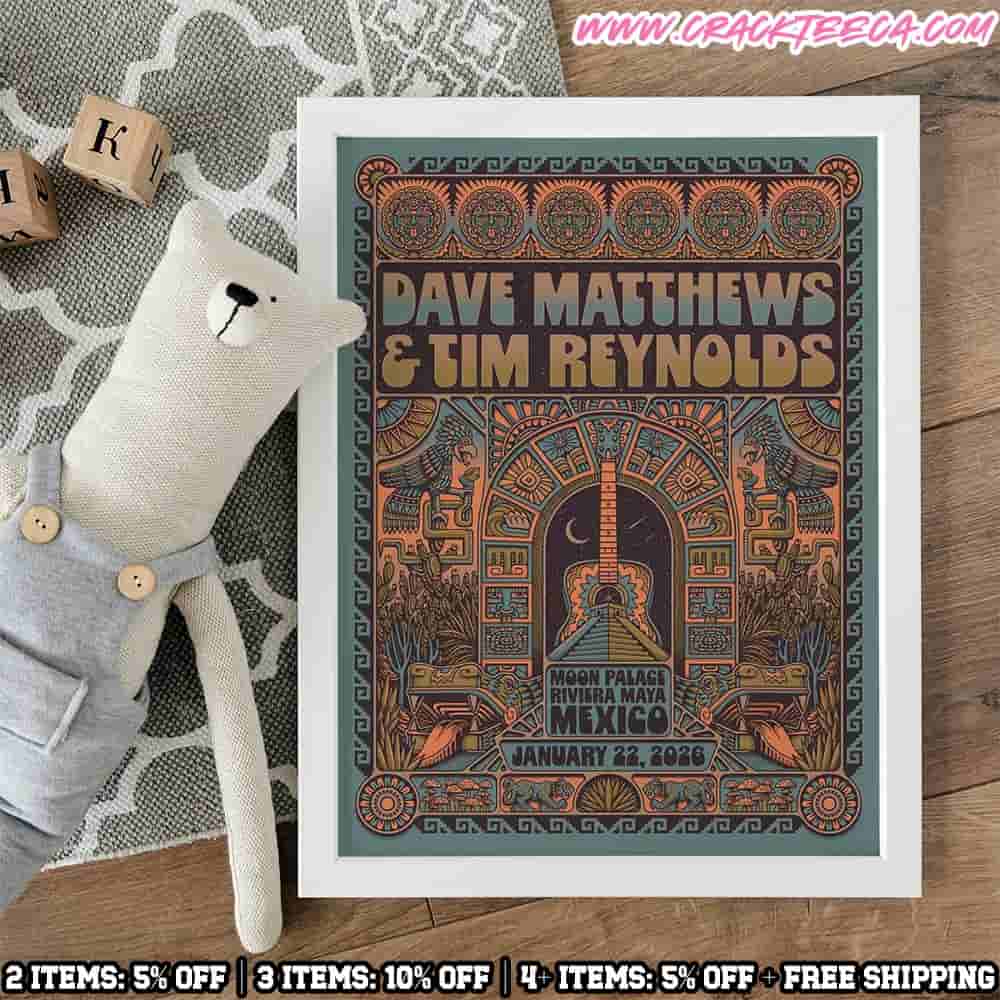 The Dave Matthews And Tim Reynolds Mexico 2026 At Moon Place Riviera Maya On January 22 Home Decor Poster Canvas is a premium commemorative piece of musical art designed for dedicated fans, alumni of the destination event, and collectors of contemporary concert memorabilia. This high-quality canvas poster celebrates the opening headlining performance of the ninth annual Dave Matthews and Tim Reynolds Riviera Maya event, which takes place from January 21 to 24, 2026. Set against the breathtaking backdrop of the Moon Palace Cancún, a luxury five-star resort in the Quintana Roo region of Mexico, this specific date features an intimate acoustic set by the legendary duo supported by the soulful folk melodies of singer-songwriter Joy Oladokun. The design of the canvas typically incorporates the vibrant and tropical aesthetic associated with this exclusive oceanfront residency, often featuring intricate key art inspired by traditional Mexican Otomi embroidery, coastal sea life, and Mayan ruins. Utilizing a rich color palette of turquoise, sunset orange, and deep greens, the poster translates the “stripped-down under the stars” atmosphere into a sophisticated piece of interior decor. The canvas is crafted from museum-grade materials, such as 175gsm fine art paper or durable cotton-poly blends, ensuring high-definition detail and long-term resistance to fading. This commemorative item serves as a functional chronological marker for the 2026 touring season, identifying the specific venue and date within the four-night all-inclusive concert vacation produced by Playa Luna Presents. For enthusiasts who traveled to the Caribbean coastline for this unique musical celebration, the canvas provides a lasting sentimental connection to the live performances and the vibrant community of fans in attendance. It stands as an ideal gift for members of the DMB Warehouse Fan Association or anyone looking to enhance their living space with a piece of authentic Dave Matthews and Tim Reynolds merchandise. As an officially licensed representation of the event’s branding, the poster adheres to the strict aesthetic and quality standards established by the Dave Matthews Band organization. Whether displayed as a central focus in a music room or added to a growing collection of destination event posters, this 2026 Riviera Maya canvas remains a definitive testament to the enduring acoustic chemistry between Matthews and Reynolds. By integrating essential search entities like the Moon Palace Riviera Maya 2026, Dave and Tim Mexico posters, and Joy Oladokun January 22, this description assists fans in securing a factually accurate and stylish tribute to a world-class musical getaway.
