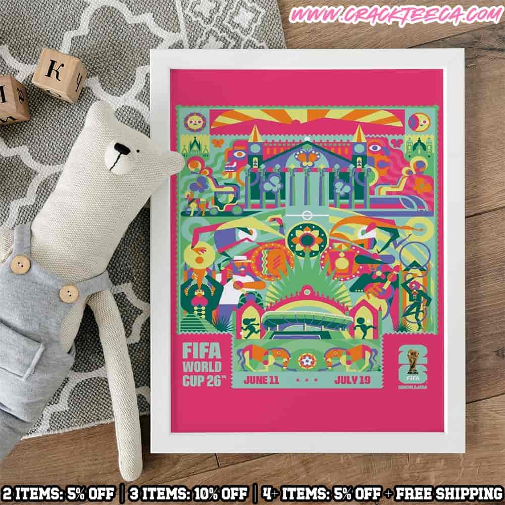 The FIFA World Cup 2026 Guadalajara Host City Home Decor Poster Canvas serves as a premier piece of wall art designed for devoted football fans, collectors, and residents of Jalisco celebrating their city’s historic role in the upcoming tournament. As part of the global “We Are 26” campaign, which unifies the 16 host cities across Canada, Mexico, and the United States, this canvas features the official visual identity assigned to Guadalajara. The artwork typically incorporates a vibrant, sun-soaked color palette including shades of agave blue and terra cotta, paying homage to the region’s rich cultural heritage and iconic landscape. Central to the design is the integration of the realistic FIFA World Cup Trophy with the bold “26” typography, often accented with stylized graphic elements inspired by traditional Aztec patterns and the local agave fields, creating a modern yet deeply rooted aesthetic. Printed on high-quality, gallery-grade canvas, this item offers a textured, sophisticated finish that elevates it above standard paper posters, making it a durable centerpiece for any living space or office.