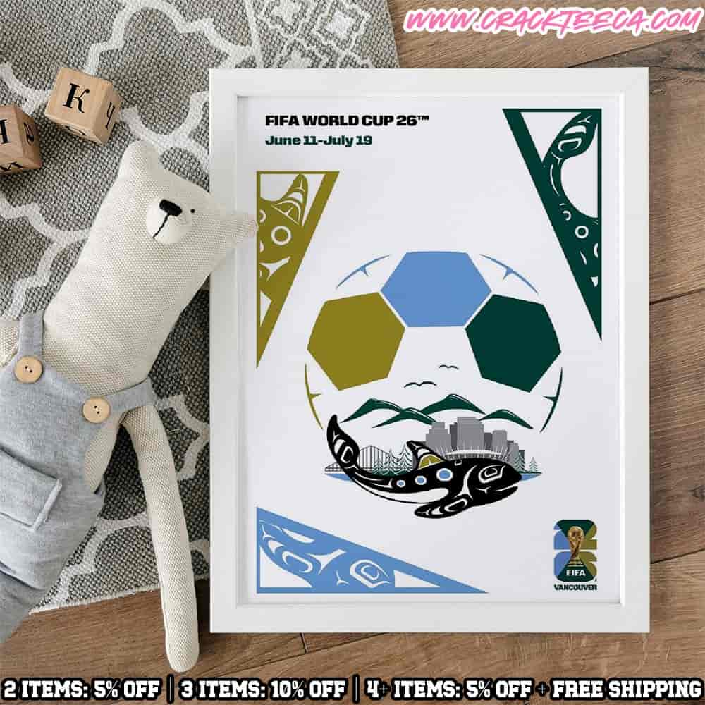 The FIFA World Cup 2026 Vancouver Host City Home Decor Poster Canvas functions as a premier piece of sports memorabilia and interior art, specifically curated for football enthusiasts, art collectors, and residents of British Columbia preparing to welcome the world to the West Coast. As a central component of the global “We Are 26” campaign, which establishes a distinct visual identity for each of the 16 host cities across Canada, Mexico, and the United States, this canvas captures the unique spirit of the Pacific Northwest. The artwork prominently displays the official Vancouver host city poster, a design meticulously crafted to reflect the region’s stunning natural environment. The graphics typically utilize a vibrant, nature-inspired color palette dominated by deep ocean blues, lush forest greens, and bright teals, symbolizing the city’s harmonious relationship with the Pacific Ocean and the North Shore Mountains. Central to the composition is the integration of the realistic FIFA World Cup Trophy within the bold “26” typography, often accented with stylized elements that evoke the fluidity of water and the energy of the game. Printed on high-grade, archival-quality canvas, the product offers a textured, gallery-style finish that provides superior durability and visual depth compared to standard glossy paper prints, making it a sophisticated focal point for residential living spaces, corporate offices, or dedicated sports entertainment rooms.