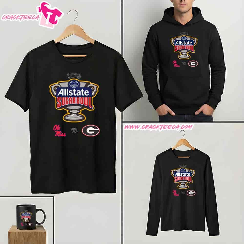 About Georgia Bulldogs Vs Ole Miss Rebels College Football Playoff Quarterfinal At The Allstate Sugar Bowl 2026 T-Shirt By Crackteeca
