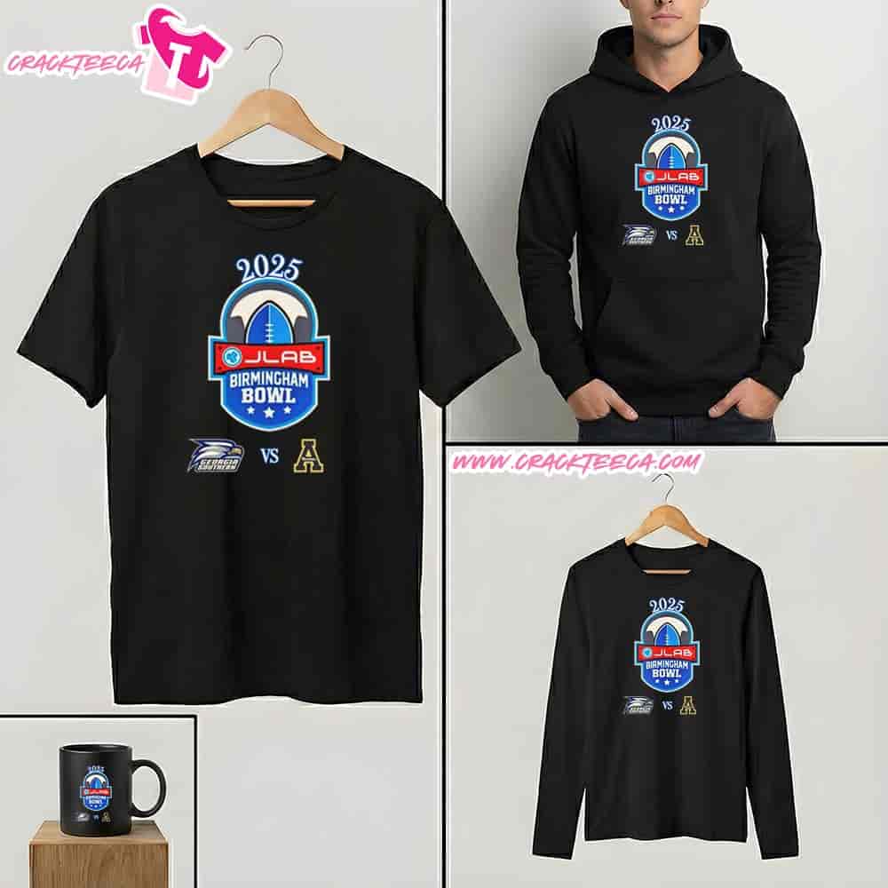 The Georgia Southern Eagles Vs App State Mountaineers December 29th Jlab Birmingham Bowl 2025 T-Shirt serves as a definitive piece of athletic memorabilia designed for dedicated alumni, students, and supporters of two prominent Sun Belt Conference programs. This apparel commemorates the 19th edition of the Birmingham Bowl, a distinct postseason matchup scheduled to take place at Protective Stadium in Birmingham, Alabama, on December 29, 2025. As a wearable record of the event, the shirt typically features the official branding of the JLab Birmingham Bowl alongside the recognizable logos of both competing institutions—the Georgia Southern Eagles and the Appalachian State Mountaineers—symbolizing the renewal of their spirited “Deeper Than Hate” rivalry on a neutral field. The design prioritizes clarity and team identity, likely utilizing the specific school colors to create a visual divide that represents the on-field contest, making it an essential item for fans traveling to the 45,000-seat venue or watching the national broadcast on ESPN. Beyond its function as game-day attire, this garment holds significant value as a collector’s item, capturing the specific details of a rare intra-conference bowl game that highlights the competitive depth of the Sun Belt. The date and location printed on the shirt anchor the product in the timeline of the 2025-26 college football bowl season, offering a tangible connection to the holiday football tradition in the Deep South. For recipients, whether they are long-time followers of the Eagles or the Mountaineers, the shirt functions as a lasting keepsake of the team’s journey to the postseason, preserving the memory of the atmosphere within the Uptown Birmingham entertainment district. As an officially licensed product, it adheres to the strict visual standards set by the NCAA and the respective universities, ensuring that the graphics and typography accurately reflect the prestigious nature of the event. This T-shirt not only celebrates the athletic achievement of reaching a bowl game but also serves as a unifying symbol for the traveling fan bases, reinforcing regional pride and the enduring legacy of collegiate football in Alabama.