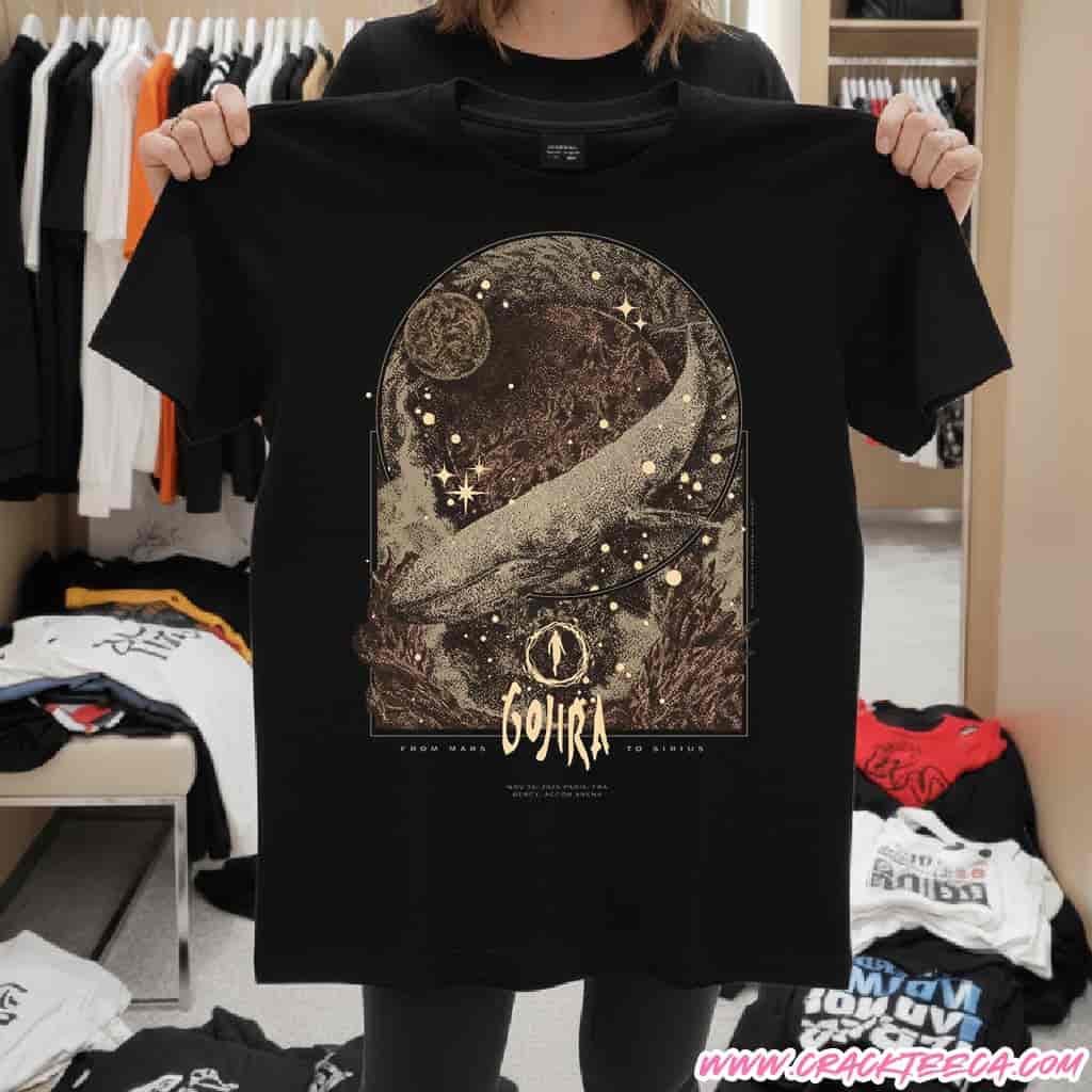 The design faithfully reproduces the official concert poster art on the front, capturing the dark, ecological, and philosophical aesthetics that define the Duplantier brothers’ vision, often featuring intricate, high-contrast imagery of nature’s raw power intertwined with metaphysical symbols. Printed on premium, heavyweight 100% organic cotton—aligning with Gojira’s strict environmental activism and “Sea Shepherd” support—this tee offers a structured yet breathable fit suitable for the mosh pit or casual wear. The back of the shirt typically lists the “France 2025” tour dates, with the November 30th Paris date highlighted as the tour’s crown jewel.