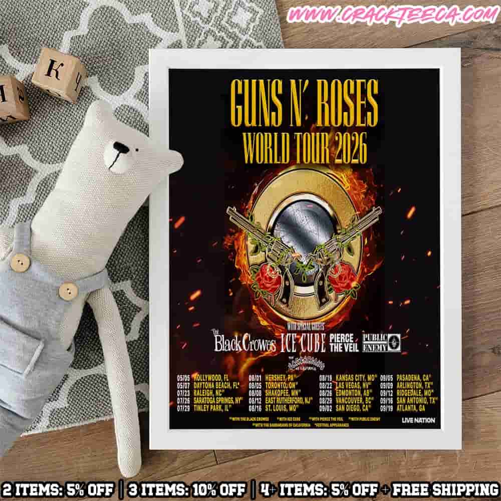 About Guns N' Roses North America Tour Dates 2026 With The Black Crowes Ice Cube Pierce The Veil Public Enemy And Barbarians Of California Poster Canvas By Crackteeca