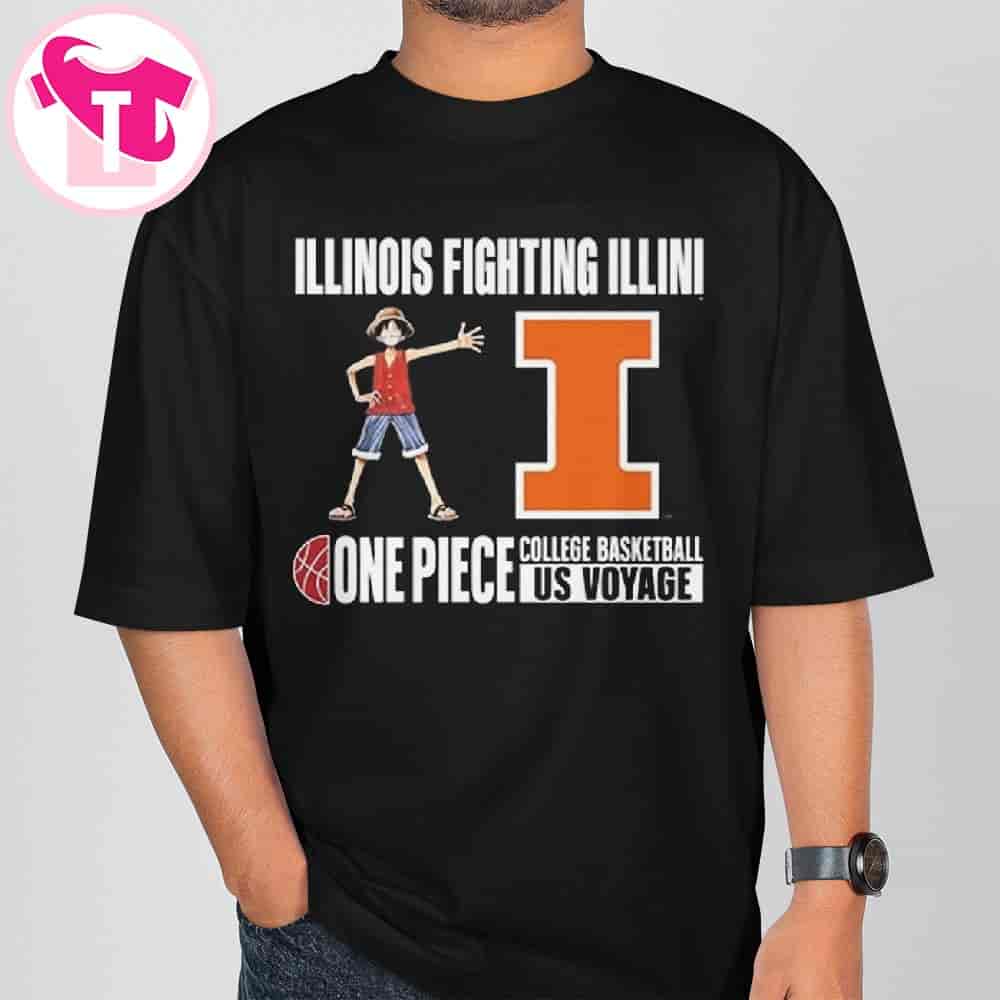 About Illinois Fighting Illini X One Piece College Basketball US Voyage 2026 T-Shirt By Crackteeca
