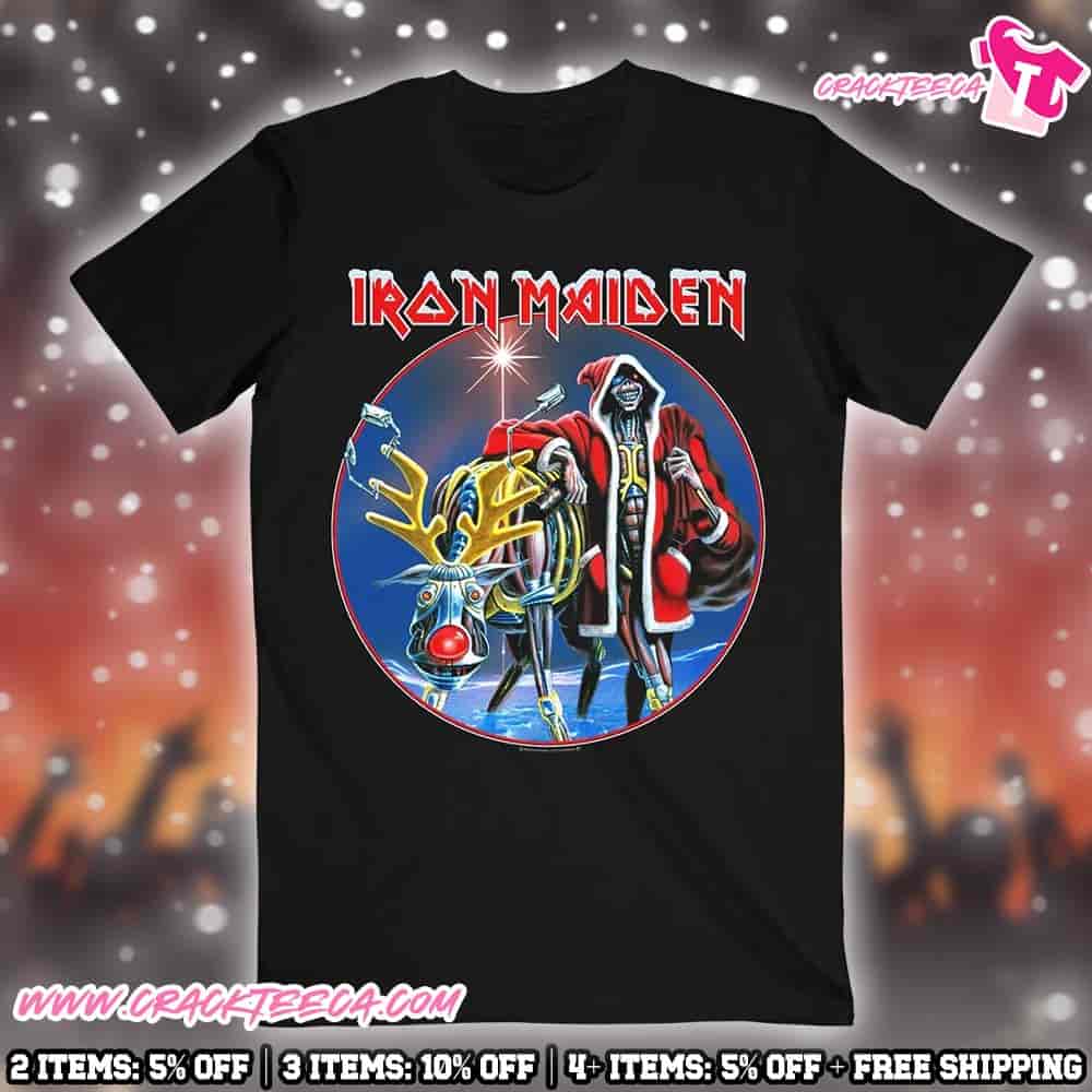 The Iron Maiden Christmas Collection 2025 Santa Eddie Xmas T-Shirt is a festive tribute to one of heavy metal’s most iconic bands, blending holiday cheer with the unmistakable power of Iron Maiden’s legendary mascot, Eddie. Founded in 1975 in London by bassist Steve Harris, Iron Maiden is a cornerstone of the New Wave of British Heavy Metal (NWOBHM) movement, with a career spanning nearly five decades, over 100 million albums sold worldwide, and a global fanbase that fills arenas and stadiums on every major tour. The 2025 Christmas edition taps directly into that history by transforming Eddie into “Santa Eddie” — typically illustrated wearing a red suit, a mischievous or menacing grin, and often holding a sack of skulls, guitars, or miniature guitars shaped like candy canes, all set against a wintery or apocalyptic Christmas backdrop inspired by the band’s album artwork tradition. Fans of classics such as The Number of the Beast, Powerslave, Seventh Son of a Seventh Son, and Senjutsu will immediately recognize the art style, which mirrors Maiden’s signature hand-drawn, high-detail, comic-book aesthetic. Released in anticipation of the 2025 holiday season, this shirt aligns with the band’s ongoing popularity following recent global tours and continued speculation about future live performances and anniversary projects related to key albums in their catalog. Holiday-themed Iron Maiden merch has become a collector’s niche, often worn at ugly Christmas sweater parties, rock concerts in winter months, or as standout streetwear for metal fans who want something beyond generic seasonal clothing. The Santa Eddie Christmas T-Shirt is most commonly produced on heavyweight cotton for durability, featuring front-centered graphic artwork in high-resolution print, designed to withstand frequent wear without fading or cracking. It appeals not only to longtime fans but also to younger listeners discovering Iron Maiden through streaming platforms and vinyl reissues. From a cultural perspective, this shirt isn’t just seasonal apparel — it’s a wearable piece of Iron Maiden history, referencing decades of world tours, headline festival performances, and the band’s distinctive visual branding that has remained consistent since the 1980s. Whether you’re attending a metal-themed holiday event, building a band merch collection, or looking for a unique Christmas gift for a rock fan, this 2025 Santa Eddie design stands as a bold fusion of music heritage and festive spirit, making it one of the most eye-catching and conversation-starting pieces in any Iron Maiden merchandise lineup.