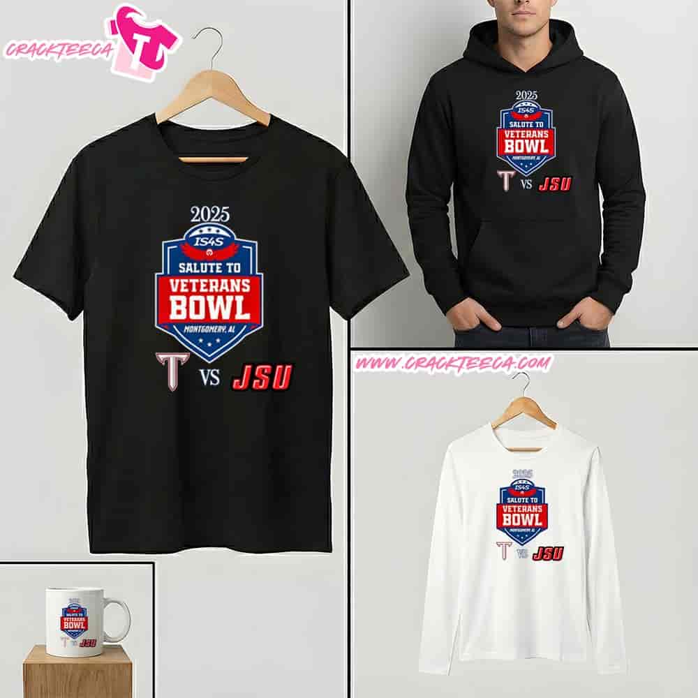 This officially licensed Is4s Salute To Veterans Bowl 2025 T-Shirt serves as a definitive piece of commemorative apparel for the highly anticipated in-state showdown between the Troy Trojans and the Jacksonville State Gamecocks. Designed to resonate with the passionate alumni bases, students, and football families across Alabama, this garment specifically honors the postseason contest scheduled for December 16th at the historic Cramton Bowl in Montgomery, Alabama. The shirt’s design typically employs a bold, high-contrast “dueling” graphic layout that visualizes the intensity of this regional rivalry, placing the Troy Trojans’ cardinal, silver, and black branding in direct opposition to the Jacksonville State Gamecocks’ red and white iconography. These distinct team emblems are centrally anchored by the official Is4s Salute To Veterans Bowl logo, which often integrates patriotic motifs to reflect the event’s core mission of honoring military service members. Printed on a durable, high-quality fabric blend—commonly chosen for its softness and ability to retain color vibrancy—the shirt is engineered to provide comfort for fans attending the game in the crisp December air of the River Region or for those cheering from home.