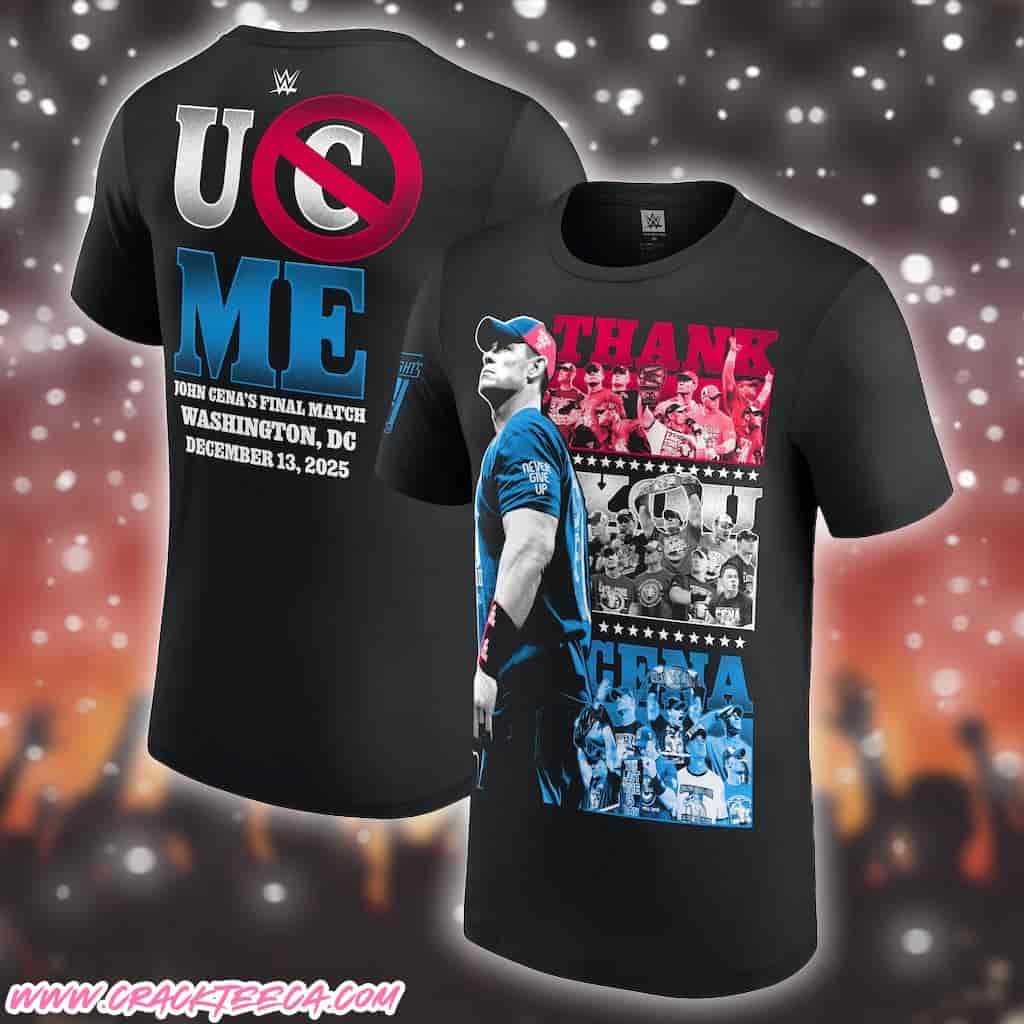 The “John Cena Farewell Tour Washington DC On December 13 2025 Thank You Cena Red White And Blue T-Shirt” stands as a definitive piece of patriotic memorabilia, marking a pivotal stop in the legendary wrestler’s “The Last Time is Now” retirement campaign. Produced specifically for the audience converging at the Capital One Arena in Washington, D.C., this apparel targets the vast “Cenation” fanbase who wish to honor the 16-time World Champion in the nation’s capital. The shirt’s design is a deliberate nod to Cena’s enduring “American Made” persona, utilizing a vibrant Red, White, and Blue colorway that mirrors the United States flag—a thematic choice that resonates deeply given the specific geographic setting of the event. The central graphic typically features the emotional “Thank You Cena” slogan paired with his classic “Hustle, Loyalty, Respect” insignia or the “Never Give Up” towel motif, rendered in high-definition screen printing on a standard, heavyweight cotton base known for its durability and comfort during long live events.