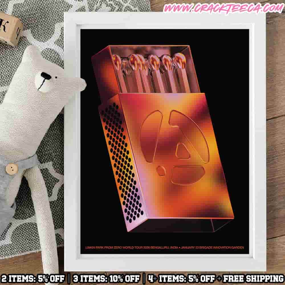 This high-definition canvas poster commemorates a watershed moment in international rock history, celebrating Linkin Park’s first-ever standalone concert in Bengaluru, India, on January 23, 2026. Designed for dedicated soldiers of the Linkin Park Underground (LPU) and music memorabilia collectors, this wall decor captures the raw energy of the “From Zero World Tour,” marking the band’s verified debut on Indian soil with new co-vocalist Emily Armstrong and drummer Colin Brittain. The artwork anchors itself in the reality of the 2026 tour itinerary, specifically highlighting the verified engagement at the sprawling Brigade Innovation Gardens in Muddenahalli, a venue chosen to accommodate the massive demand preceding their headline slot at Lollapalooza India in Mumbai. The design typically integrates the band’s evolved “From Zero” aesthetic—often characterized by chaotic, graffiti-inspired visuals, neon accents, and the reimagined LP logo—alongside sharp typography detailing the historic date and location.