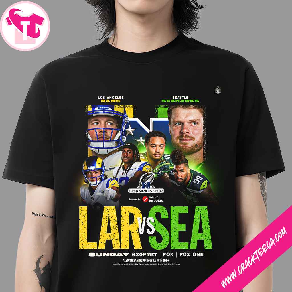 The Los Angeles Rams Vs Seattle Seahawks 2025-26 NFC Championship Final Battle For Super Bowl Lx T-Shirt is a meticulously designed piece of sports apparel crafted for die-hard fans, dedicated memorabilia collectors, and those searching for a high-value gift to celebrate a landmark moment in professional football history. This commemorative garment captures the essence of the 2025-2026 National Football League season, specifically focusing on the high-stakes showdown that determines which elite franchise will represent the National Football Conference in the milestone Super Bowl LX. As a cornerstone of the 2025-26 NFC Championship collection, the shirt serves as an authentic record of the fierce divisional rivalry between the Los Angeles Rams and the Seattle Seahawks, two organizations with deep roots in the NFC West. The design is centered on the official logos of both franchises, utilizing the vibrant royal blue and sol gold of the Rams contrasted against the Seattle Seahawks’ signature college navy, action green, and wolf gray. Each shirt is produced using premium, heavyweight 100% ring-spun cotton or a high-performance cotton-poly blend, ensuring a soft, breathable feel that maintains its structural integrity and colorfastness even after the intensity of a championship season. The visual composition prominently features the NFC Championship Final Battle typography alongside the Roman numeral designation for Super Bowl 60, commemorating the road to Santa Clara, California, where the ultimate game is held at Levi’s Stadium on February 8, 2026. Whether the game takes place under the canopy of SoFi Stadium in Inglewood or within the roaring atmosphere of Lumen Field in Seattle, this apparel allows supporters to carry a piece of the January 25, 2026, experience with them. For collectors, the item provides significant archival value, documenting the specific era of the league where tactical masterminds and elite athletes battled for the George Halas Trophy. It functions as a versatile piece of NFC Championship fan gear, perfect for attending the game, hosting a viewing party, or enhancing a personal gallery of NFL postseason merchandise. This shirt is more than just clothing; it is a symbol of loyalty and a tribute to the resilience required to reach the penultimate stage of the playoffs. By incorporating verified venue details and seasonal branding, the product stands as a reliable artifact for the Los Angeles Rams clothing and Seattle Seahawks apparel markets, offering an informative and neutral-positive representation of the 2026 football landscape. The high-resolution printing ensures that every detail of the Super Bowl LX championship shirt remains crisp, making it an enduring keepsake for any enthusiast following the quest for the Lombardi Trophy.
