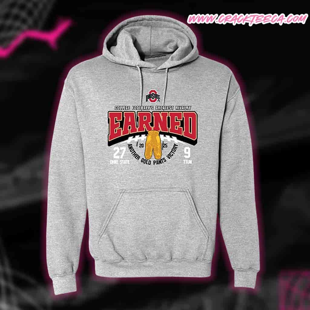About NCAA Ohio State Buckeyes 2025 Gold Pants Earned Pull Over Hoodie Shirt By Crackteeca