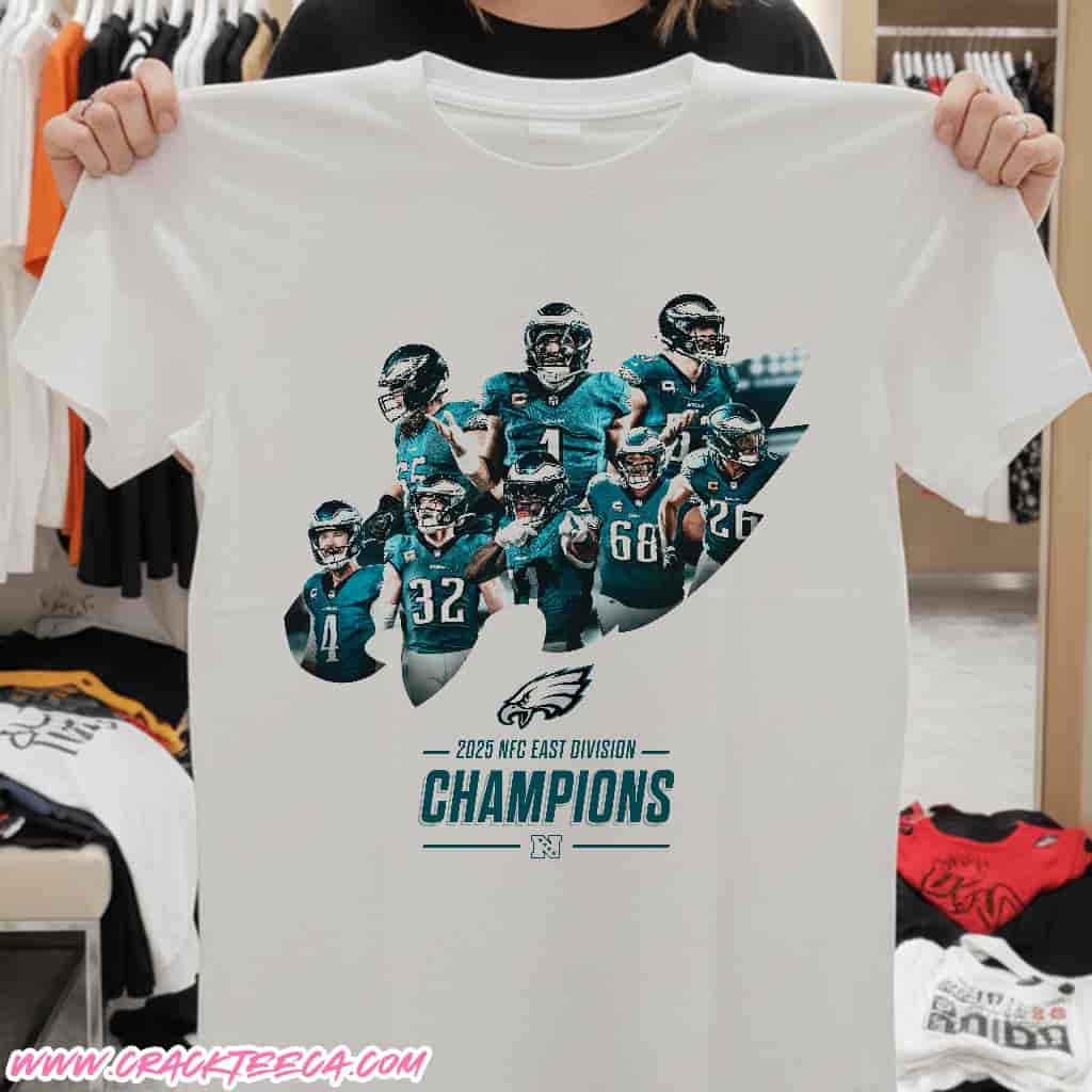 About NFL Philadelphia Eagles Back To Back 2025 NFC East Division Champions T-Shirt By Crackteeca