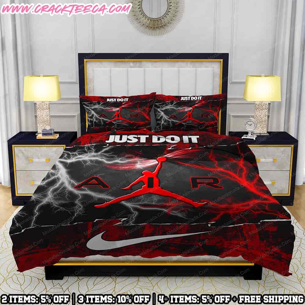 About Nike Bedding Set Air Jordan Jumpman Red And Black Lightning Storm By Crackteeca