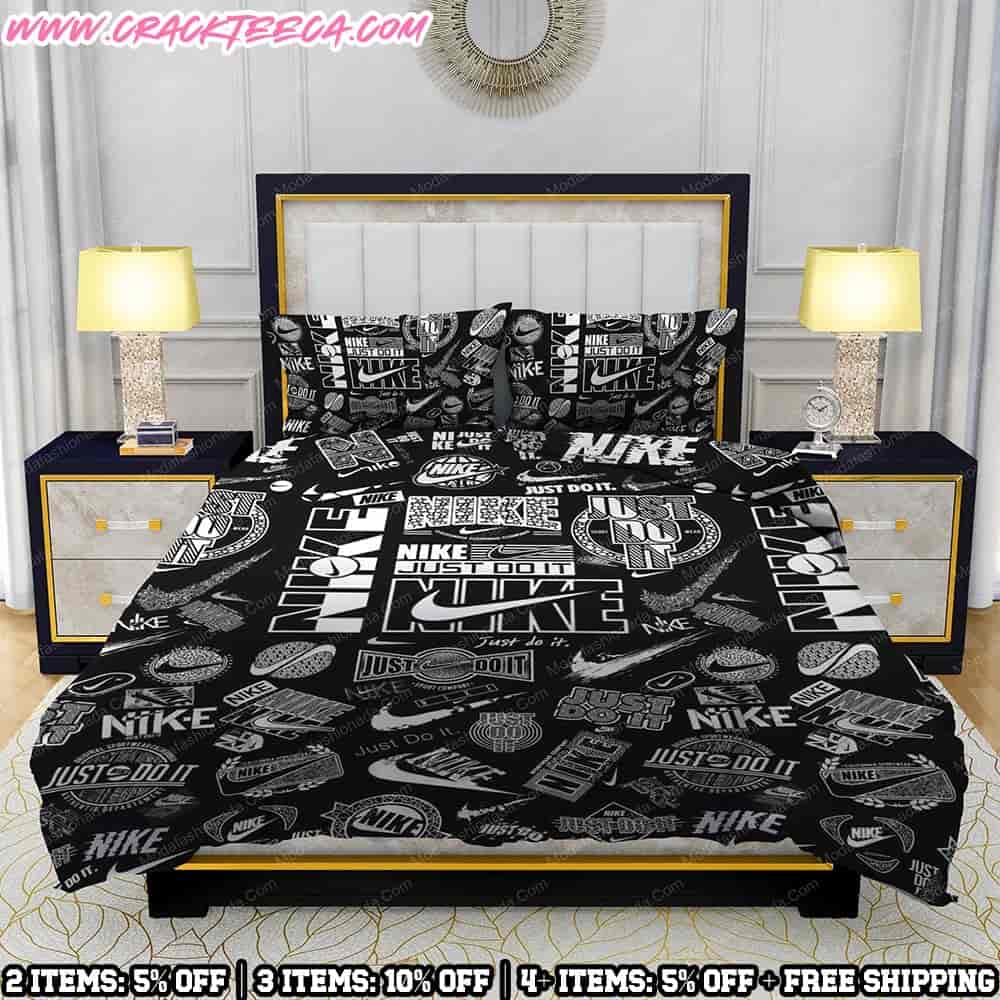 About Nike Bedding Set Monochrome Black And White Typography Logo Pattern By Crackteeca