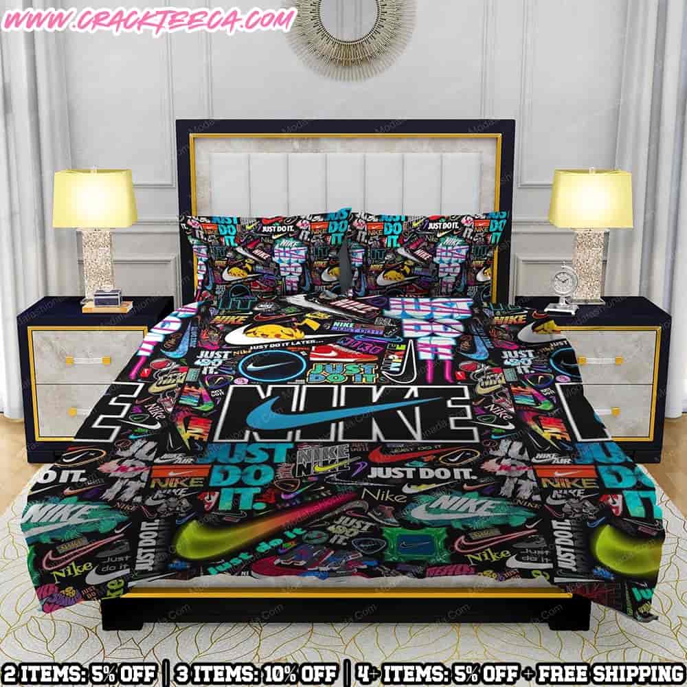 About Nike Bedding Set Neon Sneaker And Logo Sticker Bomb Collage By Crackteeca