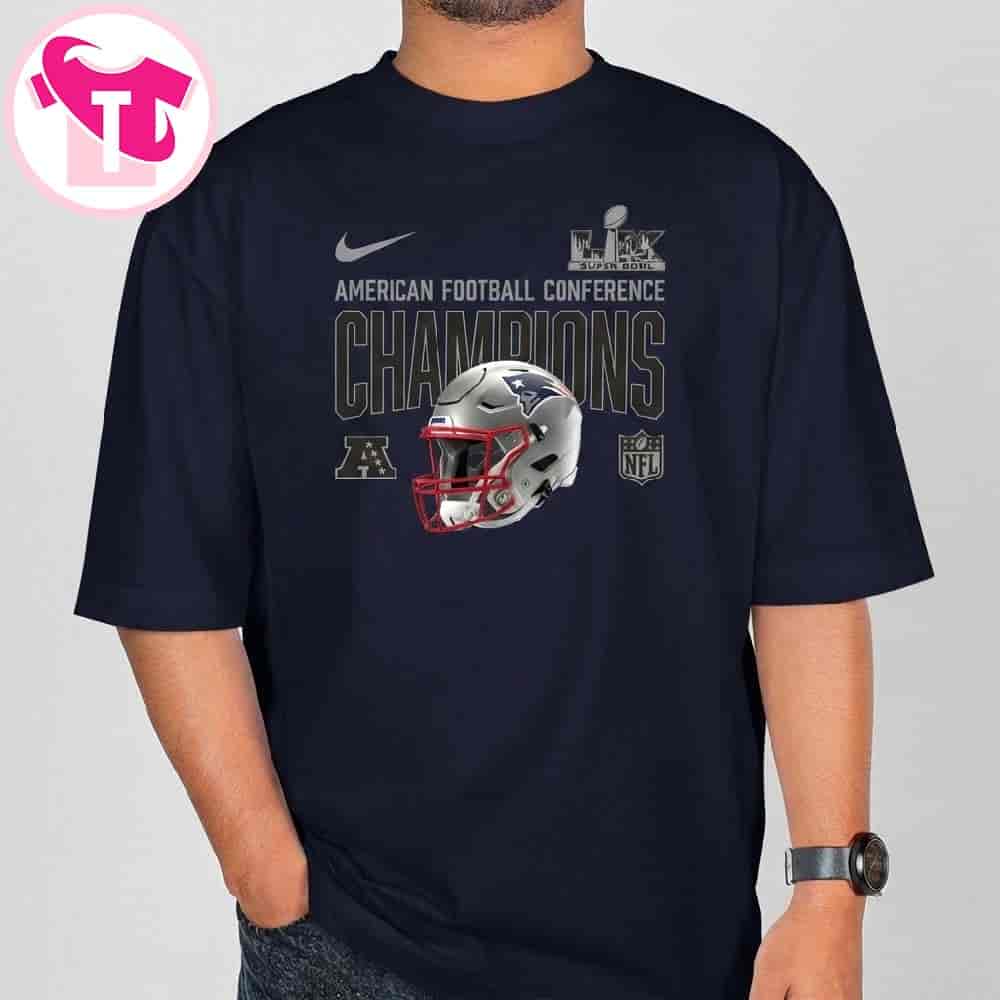 About Nike New England Patriots 2025 AFC Champions Glory Shield Helmet T-Shirt By Crackteeca