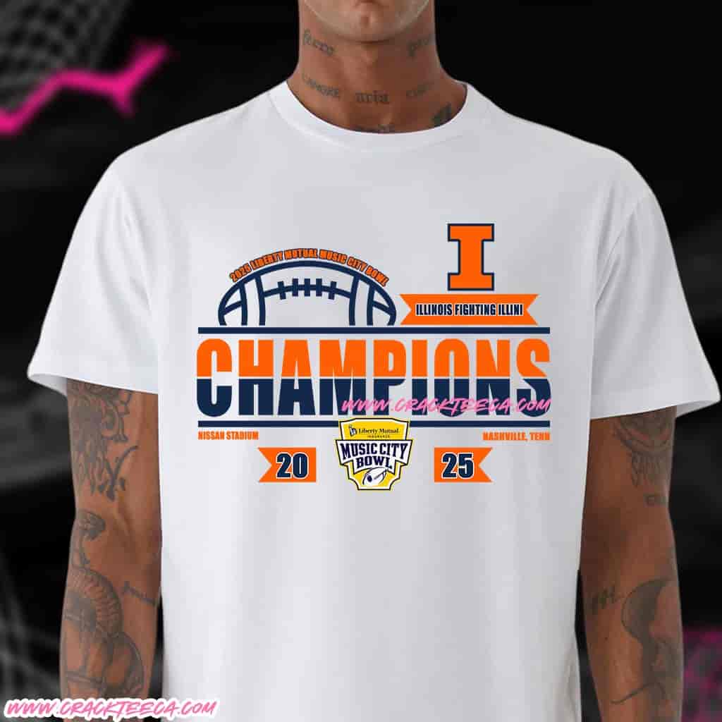 About Official Illinois Fighting Illini Football 2025 Liberty Mutual Music City Bowl Champions Locker Room T-Shirt By Crackteeca