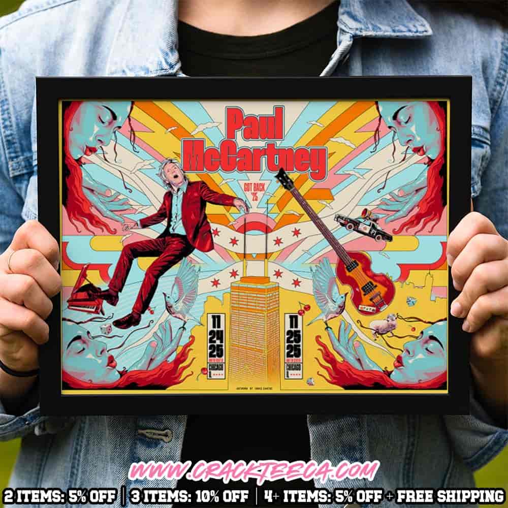 Celebrate one of the most significant musical events of the year with this exclusive commemorative Paul McCartney “Got Back” 2025 Chicago Tour Event Poster Merchandise for the legendary two-night stand on November 24-25 at the United Center in Chicago, Illinois. This highly-sought-after collectible, designed as home décor, captures the excitement of the tour’s grand North American finale, making it a must-have for every dedicated fan of Sir Paul McCartney, The Beatles, and Wings. The “Got Back” tour showcases the living legend performing a monumental setlist that spans his prolific six-decade career, including iconic tracks such as “Hey Jude,” “Live and Let Die,” “Band on the Run,” and “Let It Be.” These final Chicago performances are not just concerts; they are historical musical experiences, representing McCartney’s long-awaited return to the United Center after over a decade. The venue, famously known as the home of the Chicago Bulls and Blackhawks, transformed into a shrine for rock and roll history on these two nights.
