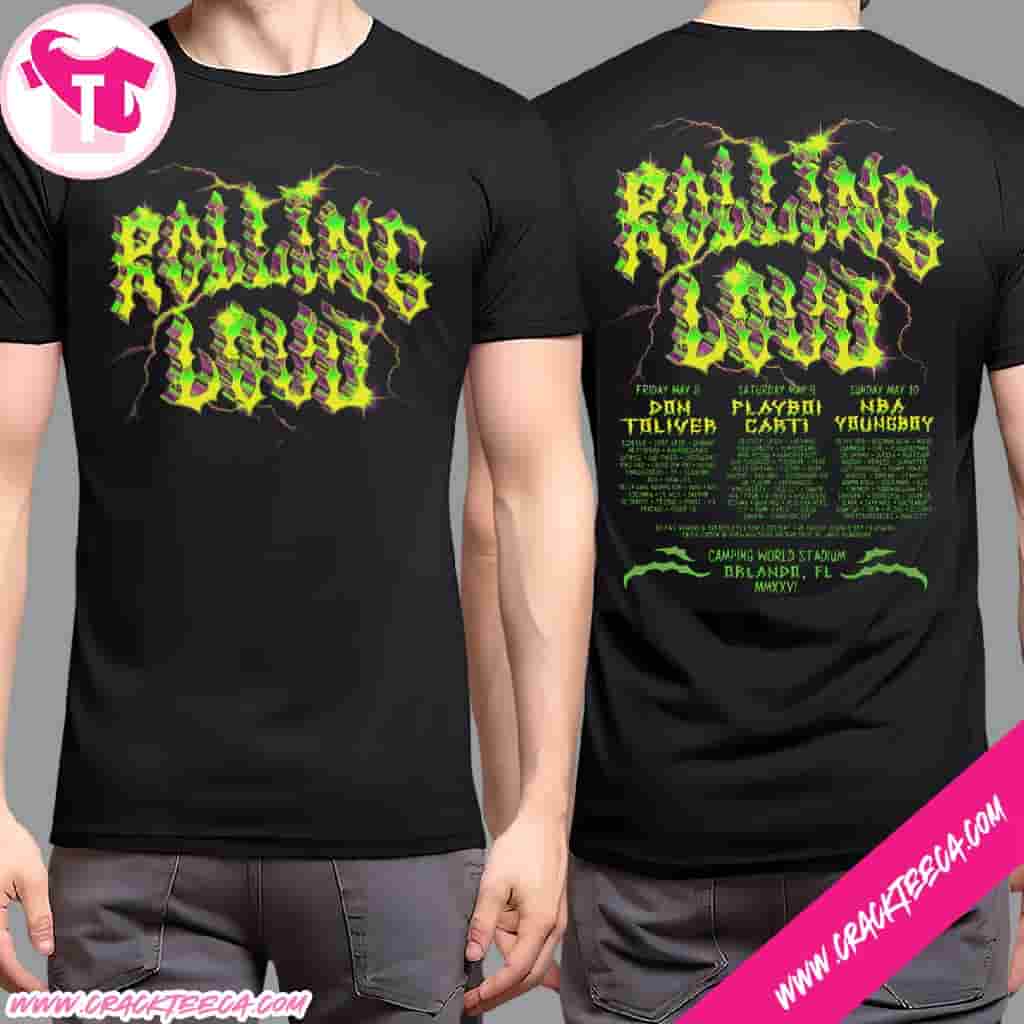 The Rolling Loud USA 2026 Exclusive Lineup Tee functions as the definitive wearable record of the festival’s historic relocation to Central Florida, capturing a pivotal moment in hip-hop culture. Released specifically for the event occurring from May 8 through May 10, 2026, this t-shirt targets the thousands of attendees and global music collectors who value the significance of this specific gathering: it stands as the sole United States appearance for the Rolling Loud brand in 2026. The garment is designed to serve as a visual roll call of the era’s dominant artists, typically featuring the bold, metallic Rolling Loud logotype on the chest, customized with “Orlando” or “USA 2026” branding to distinguish it from previous Miami or California editions. The reverse side acts as the core value proposition, displaying the massive, officially verified artist roster in hierarchical typography. This list immortalizes the trio of headliners—Don Toliver, Playboi Carti, and NBA YoungBoy—alongside a dense undercard that includes heavyweights like Chief Keef and Sexyy Red, as well as rising stars such as Destroy Lonely and EsDeeKid.