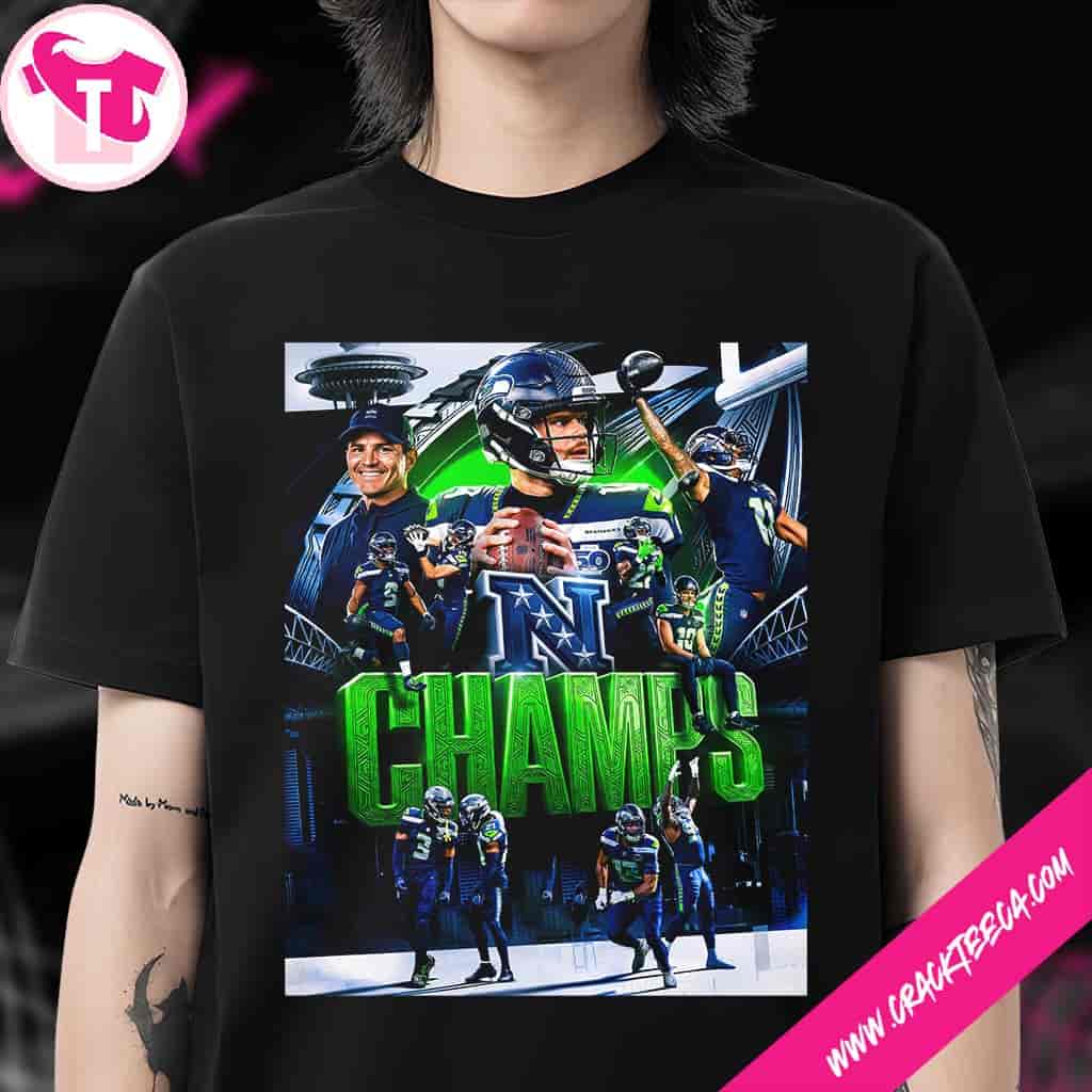 About Seattle Seahawks Crowned 2025 NFC Champions Road To Super Bowl LX 2026 T-Shirt By Crackteeca