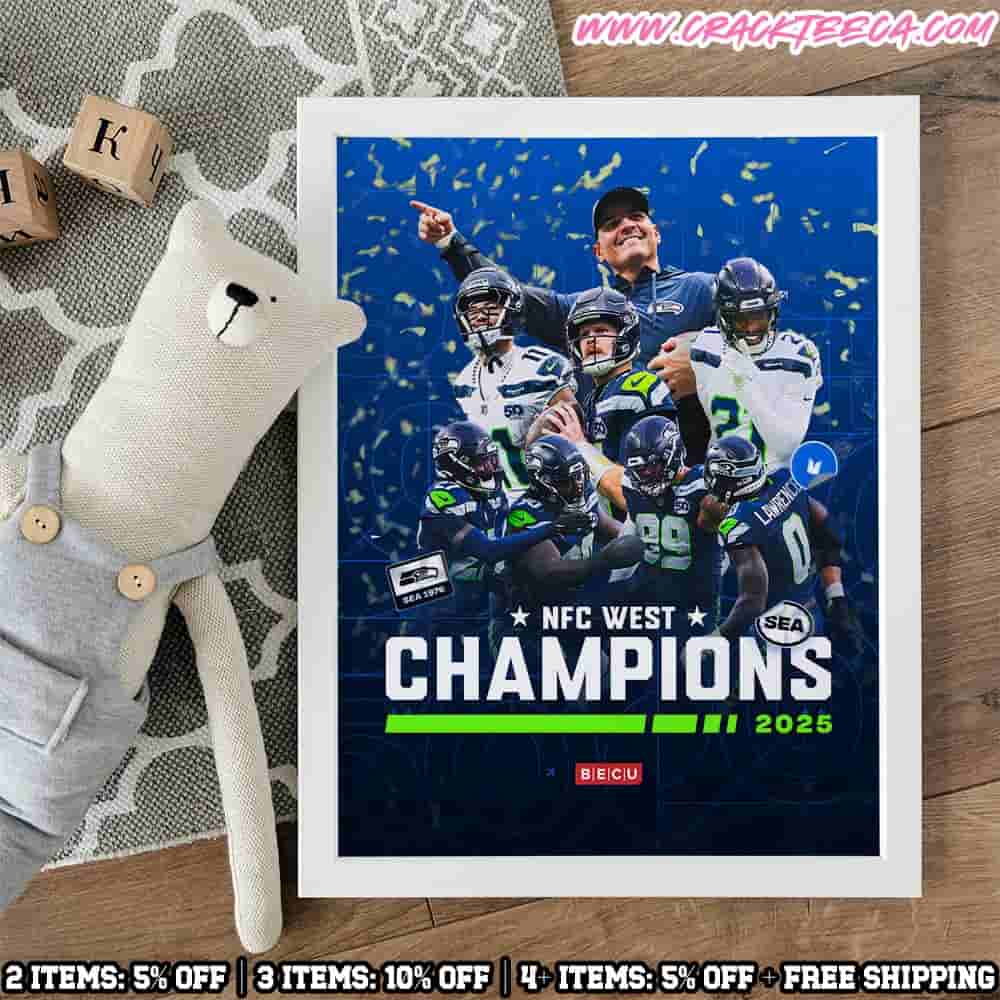 Contextually, this home decor item captures the electric atmosphere of Lumen Field, where the team’s home-field advantage played a pivotal role in securing the division crown. By displaying this canvas or poster, fans acknowledge the collective effort of the roster and coaching staff in navigating a tough NFC West schedule to emerge as the number one team in the quartet. The product is generally available in multiple formats, such as high-resolution posters printed on archival-grade paper which prevents yellowing over time, or gallery-wrapped canvases stretched over sturdy wooden frames for a more textured, museum-quality appearance. This versatility allows collectors to choose the presentation that best fits their interior design preferences while maintaining the integrity of the commemorative graphics.