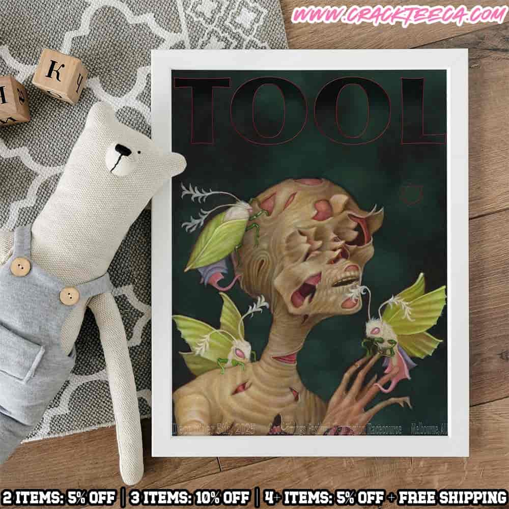 The Tool Melbourne 2025 Event Poster Home Decor Poster Canvas offers a museum-grade alternative to the traditional concert print, specifically capturing the visual identity of the band’s appearance at the Good Things Festival on December 5th. Given Tool’s reputation for collaborating with world-class psychedelic and visionary artists for their show-specific merchandise, this canvas allows fans to display the intricate, often mind-bending artwork of the Melbourne date without the risk of creases or tears associated with paper. The canvas substrate enhances the depth and vibrancy of the colors—whether they are the deep purples of lateralus-inspired geometry or the stark contrasts of biomechanical anatomy—giving the artwork a three-dimensional presence on the wall. This item serves as a high-end interior design element for the progressive metal fan, transforming the chaotic energy of the Flemington Racecourse festival set into a contemplative, static masterpiece. It is printed with archival inks designed to last for generations, mirroring the timeless nature of the band’s music. By choosing the canvas format, the collector signals a deep appreciation for the intersection of auditory and visual art, creating a space that reflects the complexity of the Tool experience while permanently marking the specific time and place of the 2025 Australian tour.