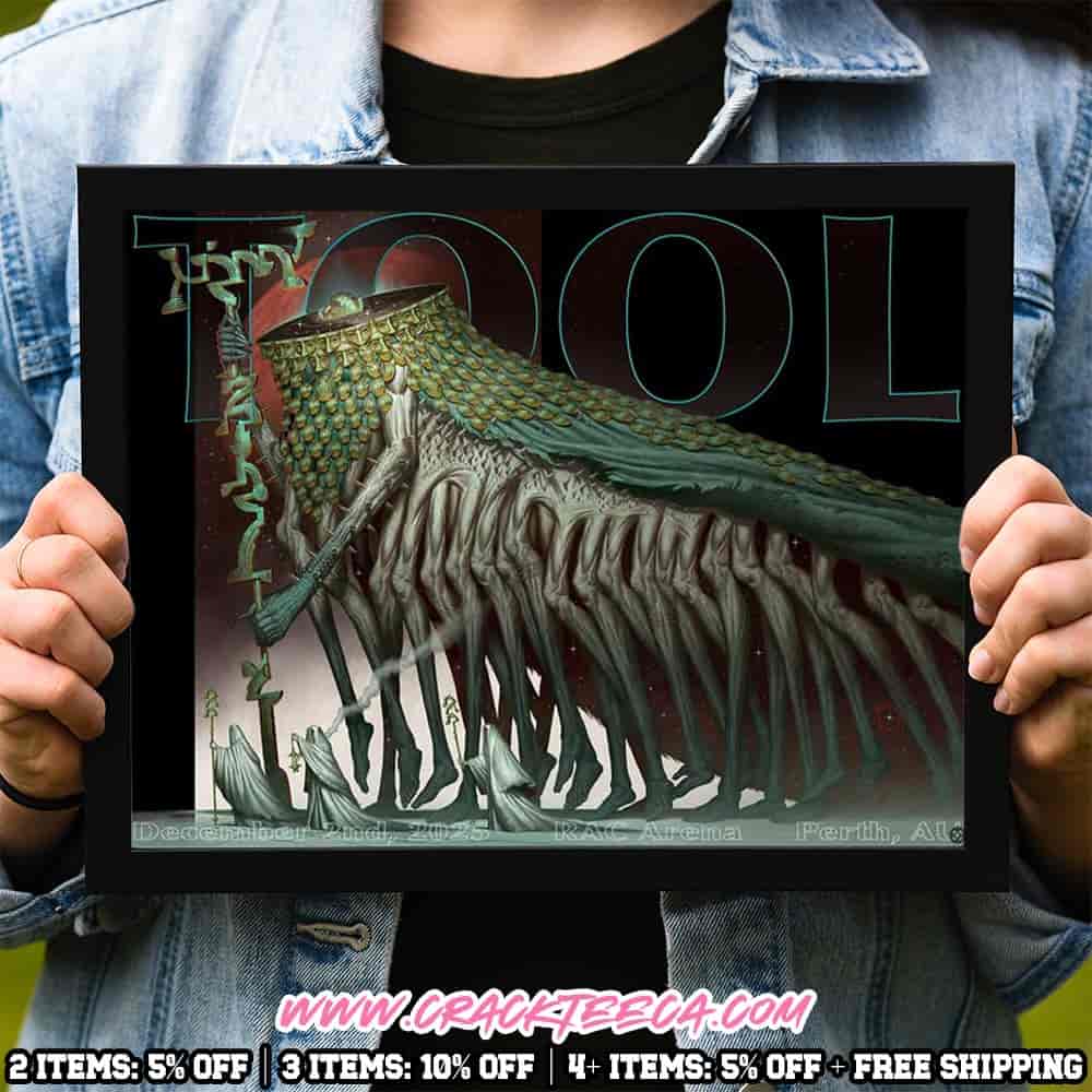 The Tool Official Poster for Perth, Australia – RAC Arena, December 2, 2025 Home Decor Poster Canvas is a premium collectible designed for fans of one of the most influential progressive metal bands in modern music, perfectly capturing the anticipation and energy of their Australian live performance. Formed in Los Angeles in 1990, Tool — consisting of Maynard James Keenan, Adam Jones, Justin Chancellor, and Danny Carey — is renowned for its complex compositions, intricate polyrhythms, dark atmospheric soundscapes, and thought-provoking lyrics, creating a unique and immersive listening experience across landmark albums such as Ænima, Lateralus, 10,000 Days, and Fear Inoculum. Known for visually stunning live shows, Tool combines elaborate lighting, projection mapping, and multimedia art to complement their intense and meticulously crafted music, making each performance a truly unforgettable event.
