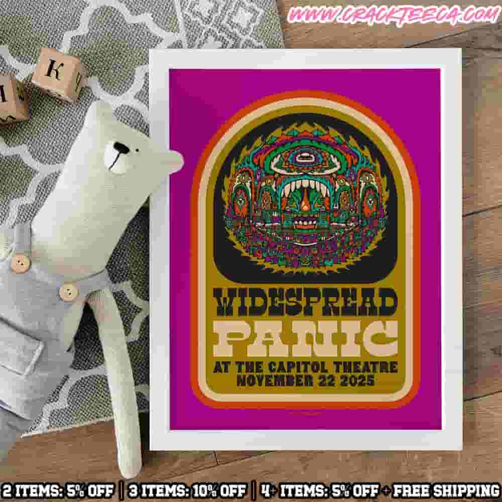Capture the essence of the continuing jamband celebration with the Widespread Panic Concert Poster Night 2 November 22 2025 Capitol Theatre Port Chester NY Art By Yong And Sick Home Decor Poster Canvas. This exclusive canvas print serves as a high-quality piece of art commemorating the second night of Widespread Panic’s highly coveted multi-night stand at the iconic Capitol Theatre in Port Chester, New York. The concert took place on Saturday, November 22, 2025, marking the midpoint of their annual Thanksgiving week run, and delivered another unique setlist filled with deep cuts and extensive improvisational jamming, a core tradition for the “Panic Freaks.” The venue, the Capitol Theatre, located at 149 Westchester Ave, Port Chester, NY 10573, is celebrated for its rich history and exceptional visual and sonic environment, which perfectly enhances Widespread Panic’s legendary live performance. As a weekend show, attendance was at its peak, with tickets—initially priced around $79.50 (excluding fees)—being extremely scarce and highly valued on the secondary market due to the band’s commitment to providing a completely different show from the night before (November 21st) and the final night (November 23rd). The setlist for Night 2 often features some of the band’s biggest extended jams, showcasing their virtuosity on staples like “Driving Song,” “Bust It Loose,” or cover songs that surprise the audience. The artistic detail specified on the poster, Art By Yong And Sick, highlights its collectible nature; this duo is renowned for creating some of the most sought-after gig posters in the modern rock scene, often using intricate line work and vibrant, surreal imagery that reflects the psychedelic elements of the show. This canvas poster not only preserves the date but also represents a specific, limited-edition piece of graphic art, offering a lasting memento of a unique and high-energy performance in the historic venue of Port Chester, NY, making it an essential acquisition for serious collectors and fans of Widespread Panic.
