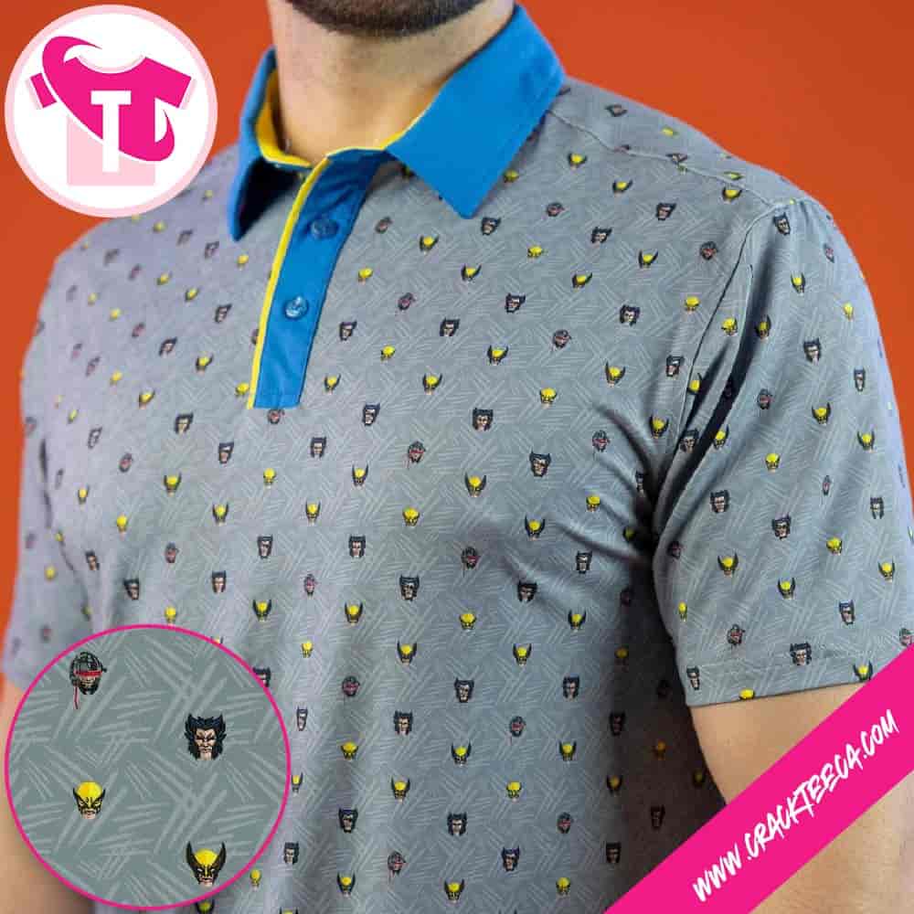 The “X-Men Lil Logans All Day Golf Polo Shirt” stands as a playful yet high-performance tribute to Marvel’s most resilient mutant, expertly blending character history with modern athletic engineering. Manufactured under the Breakfast Balls label, the dedicated golf lifestyle division of the apparel brand RSVLTS, this garment is specifically curated for a demographic that ranges from long-time comic book readers to recreational golfers who want to infuse their game with a touch of “berserker rage” controlled by fairway etiquette. The shirt’s design ethos, as implied by the “Lil Logans” nomenclature, features a dynamic, all-over print that showcases James “Logan” Howlett in a variety of his most iconic costumes throughout publication history, rendered in a stylized, miniature aesthetic. The visual narrative typically includes the classic 1990s yellow and blue “Tiger Stripe” suit made famous by *X-Men: The Animated Series*, the gritty brown and tan costume from the 1980s, and potentially the stealthy black and grey X-Force ensemble or the raw Weapon X appearance. These colorful, action-ready figures are set against a clean, contrasting background, creating a conversation piece that serves as a chronological celebration of the character’s evolution while maintaining a crisp look suitable for the clubhouse.